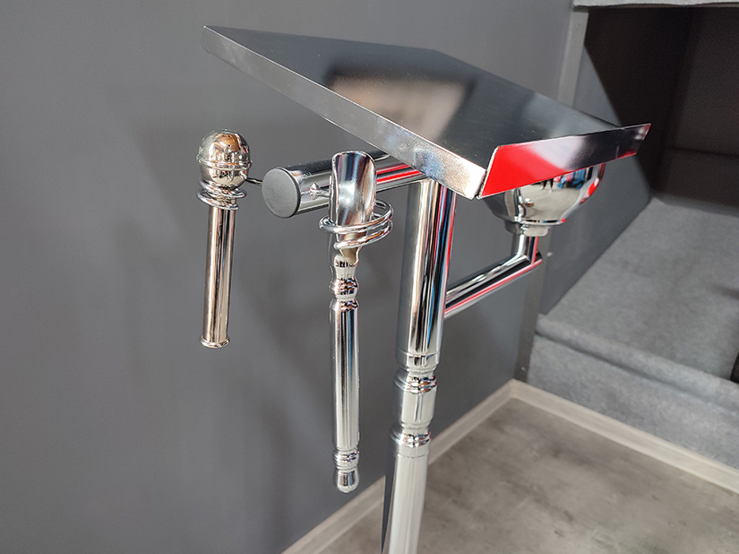 Dank der Höhenverstellung eignet sich dieses Modell sowohl für kleinere Kapellen als auch für größere Räume, in denen eine erhöhte Position für bessere Sichtbarkeit der Anwesenden sorgt.